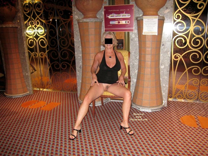 Hello fellows Voyeurwebbers ... thanks again for all your wonderful comments from our last posting, JBunny and I both enjoy reading them. Here's our latest adventure aboard one of the "Fun Ships" ... and boy did we have fun. Even though other people don't appear in these pictures there were plenty of other people around since the boat held 3,500 passengers. JBunny did get caught on a couple of occasions with her dress up (or down) but, fortunately, no one seemed to mind. If you enjoy the pictures, do leave JBunny a word of encouragement as it keeps her posing and me posting. Ciao.